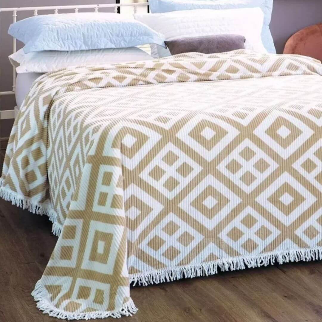 Adicione um toque de elegância e conforto ao seu quarto com a Colcha Chenille Casal com Franjas Sofisticadas! Compre já a sua!