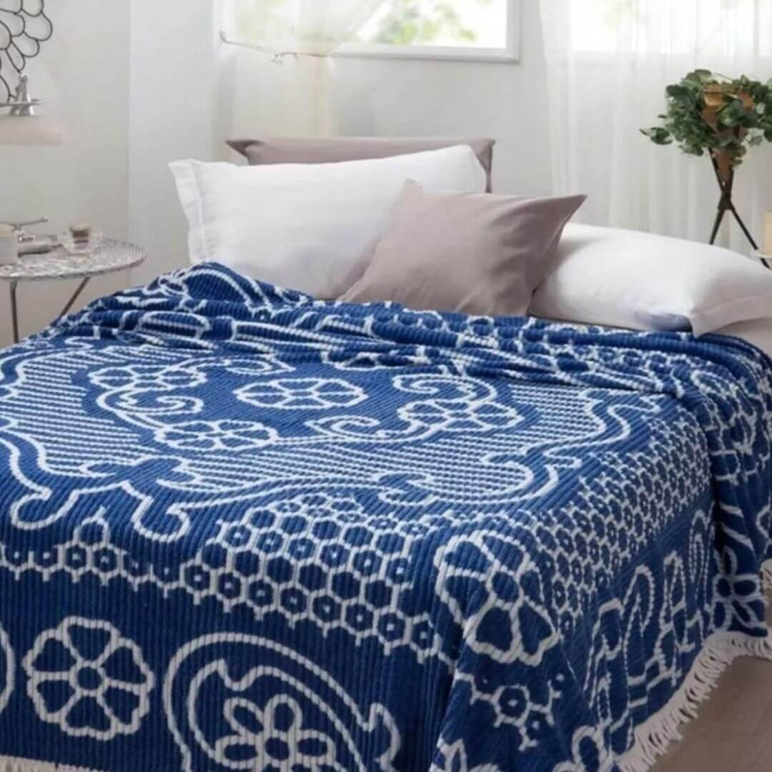 Colcha Chenille Casal com Franjas Sofisticadas (2,40m x 2,20m) – 100% Poliéster