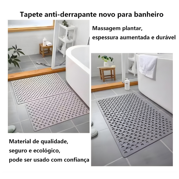 Além da segurança, sua textura massageadora proporciona uma sensação agradável nos pés, tornando o momento do banho ainda mais relaxante. Fabricado em material ecológico, resistente e durável, é uma ótima escolha para quem busca praticidade, proteção e bem-estar no banheiro.